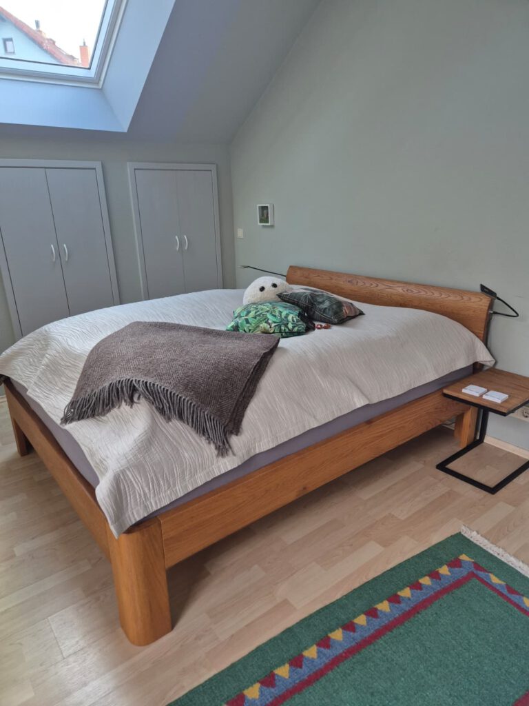 … ideal für zwei Personen (Queen Size Bett), notfalls auch für drei mit Schlafsofa. Immer gerne mit Hund, für den gibt es einen Schlafplatz und Näpfe.